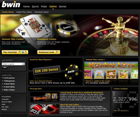 New players at Bwin Casino are eligible for a 50% welcome bonus on their first deposit at the casino up to EUR 250.
