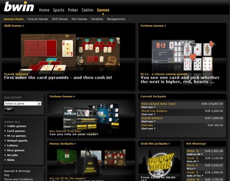 Bwin Games is offering a number of exciting promotions. The Heavy Jackpots promotion is offering six massive jackpots worth EUR 28,000 each between 2 May and 7 July, 2010. Every Tuesday, Wednesday and Thursday between 22:00 and 00:00 CET are the Happy Hour Jackpots at Skill Games.